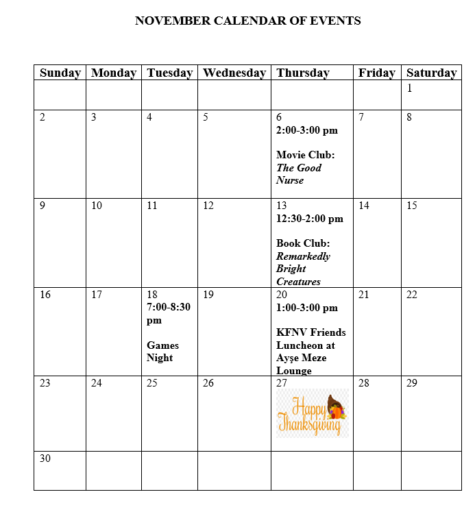 The King Farm Neighbors Village (KFNV) has several events scheduled for November.