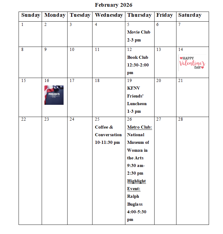 The King Farm Neighbors Village (KFNV) has the following events scheduled for February.
